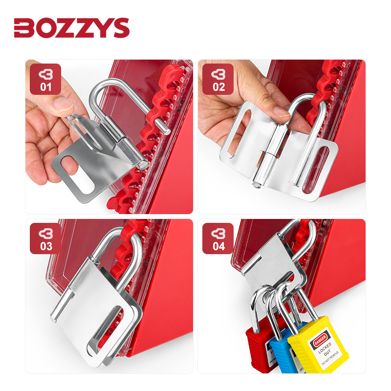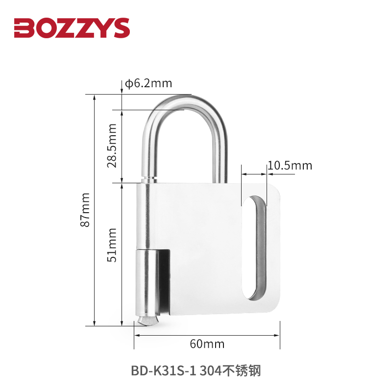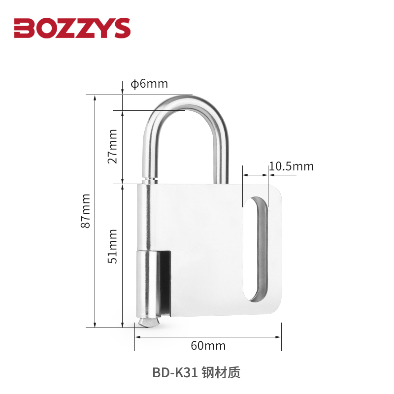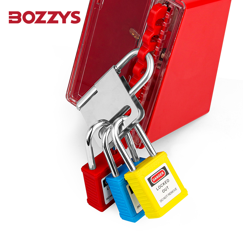 BOZZYS防撬搭扣鎖BD-K31S-1帶有 27mm鎖梁內徑,可容納6把掛鎖。非常適合在每個鎖定點由多名工人鎖定,搭扣可在進行維修或調整時保持設備不工作。在從搭扣上取下最后一個工人的掛鎖之前,無法打開控制。
