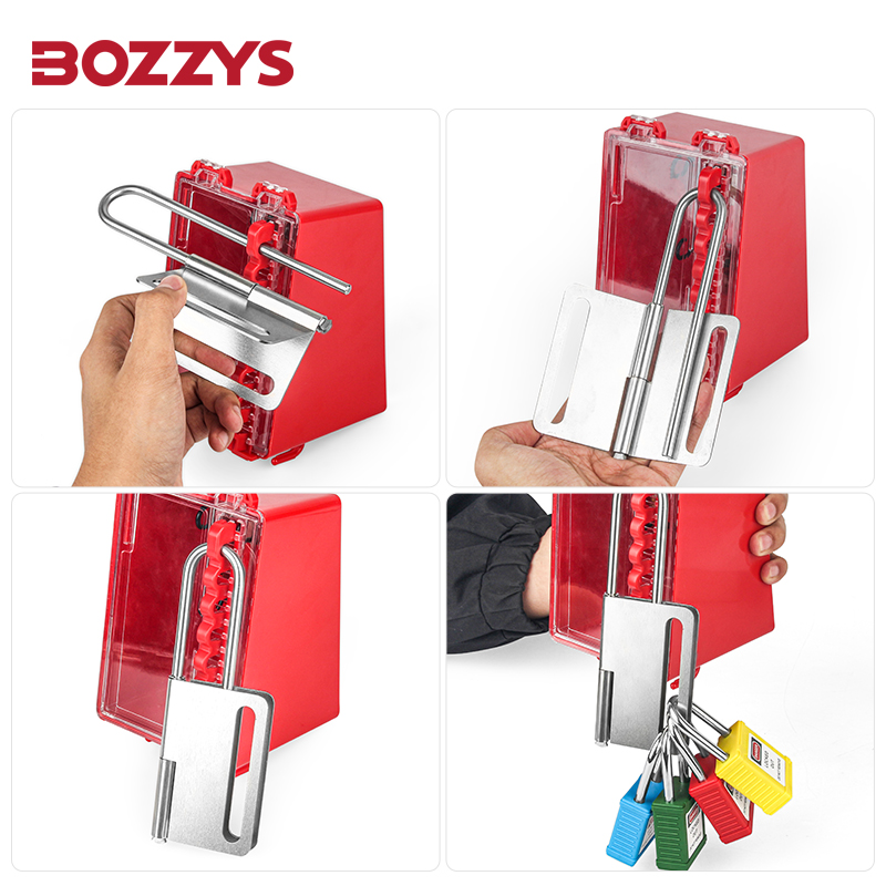 BOZZYS防撬搭扣鎖BD-K32S帶有 70.5mm鎖梁內徑,可容納10把掛鎖。非常適合在每個鎖定點由多名工人鎖定,搭扣可在進行維修或調整時保持設備不工作。在從搭扣上取下最后一個工人的掛鎖之前,無法打開控制。