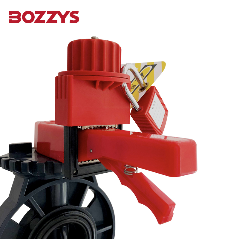 BOZZYS可調節蝶閥鎖BD-F22適用于部分蝶閥鎖定,閥桿范圍:寬≤42mm;手柄開口≥14.5mm;高5-35mm。多功能開口夾適合部分封閉環和寬手柄,不銹鋼鋸齒設計,使鎖具緊密固定在蝶閥手柄上,不易松動,無需安裝工具,自帶鎖緊螺絲旋轉手輪,可調節蝶閥鎖固定在手柄合適位置,轉動手輪鎖緊,再對產品進行上鎖,上鎖狀態更加穩定。采用高強度、耐熱性好、耐沖擊,耐腐蝕的聚丙烯PP材料,耐高低溫-30~140℃ 適用于各種惡劣的作業環境。
