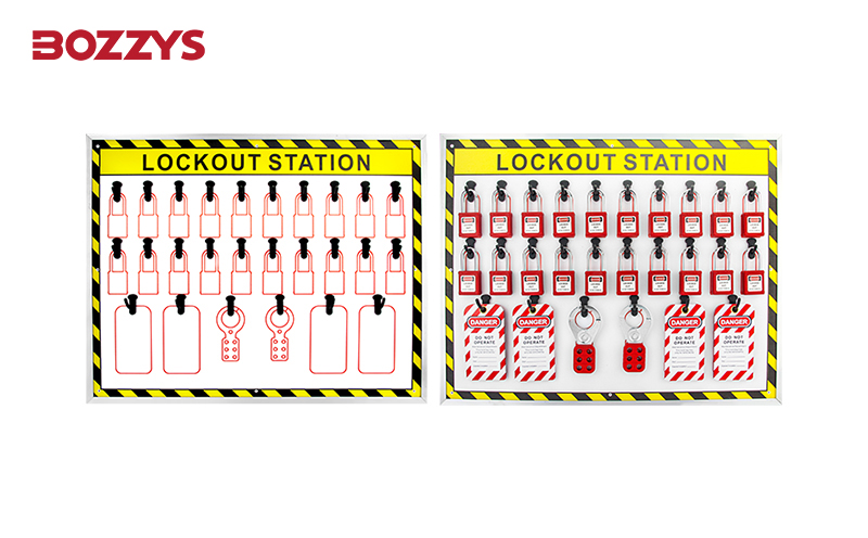BOZZYS開放式鎖具站BD-B7系列有7款可選,采用隔熱、保溫、防潮、阻燃、耐酸堿、抗腐蝕的硬質(zhì)塑料PPC板,外框加鋁邊制成。為了使管理設(shè)備更容易,鎖具站上標有清晰的圖形表示鎖具應(yīng)該放在哪里。開放式管理設(shè)計,方便所有維護人員快速方便取用鎖具,起到安全防范警示作用,避免或減少安全事故的發(fā)生。